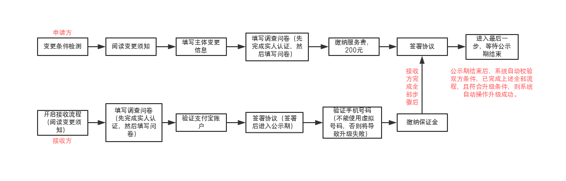 签署协议,并进入最后一步,等待公示期结束,公示期结束后,系统自动校验双方条件,已完成上述全部流程,且符合升级条件,则系统自动操作升级成功。