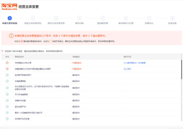 根据最新淘宝规则,变更店铺经营主体或创建店铺,必须满足以下要求: